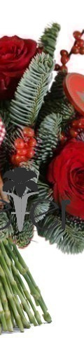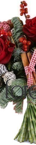 3 x Red Roses, Red Hypericum Berries, Cinnamon Sticks, Christmas Pines, 3 x Mini Pine Cones