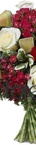 A popular gift choice for Valentines Day, birthday celebrations, Mother's day, house-warmings, and corporate occasions. The Lady Rose Bouquet includes a stunning arrangement of freshly picked blooms. With pure white roses, striking red bouvardia stems, and lush seasonal greenery, this hand-tied display will make an outstanding addition to any office space, hospital room, or family home.