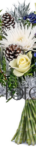 Our Silent Night Christmas Bouquet is a floral gift to remember. Expertly hand-tied by our in-house florists, this wintery delight combines frosty white roses and white spider chrysanthemums with festive pinecones, shimmering silver thistles, and an abundance of greenery to create the perfect Christmas flower arrangement. Select your preferred wrapping or vase from our exclusive online collection, and we will take care of the rest. We will have your Christmas flowers delivered directly to the recipient's door to add festive fragrance to their Silent Night.